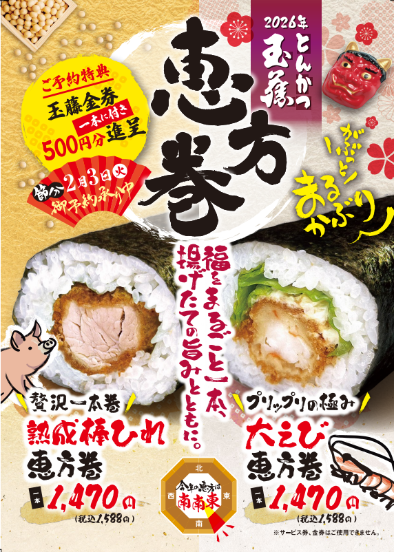 2026年 玉藤「恵方巻」ご予約承り中【ご予約特典あり!】